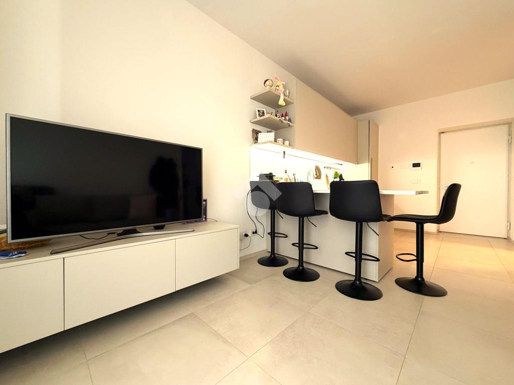 Internamente l'unità immobiliare è composta da un ampio soggiorno arredato con una maestosa cucina completa di elettrodomestici e sgabelli di design, un comodo divano e un mobile TV, una camera da letto grande e luminosa con armadio su misura e un bagno con doccia grande.